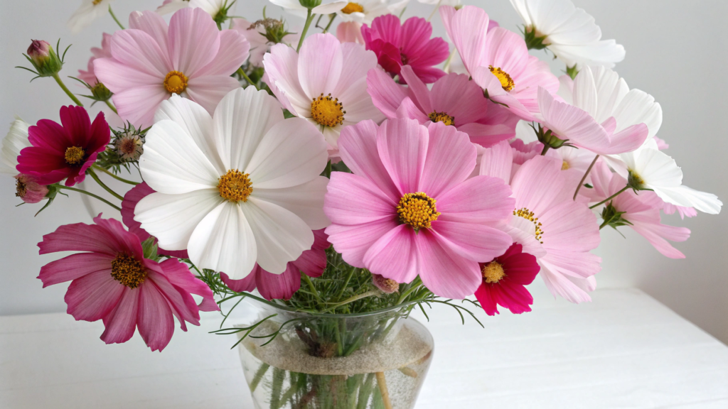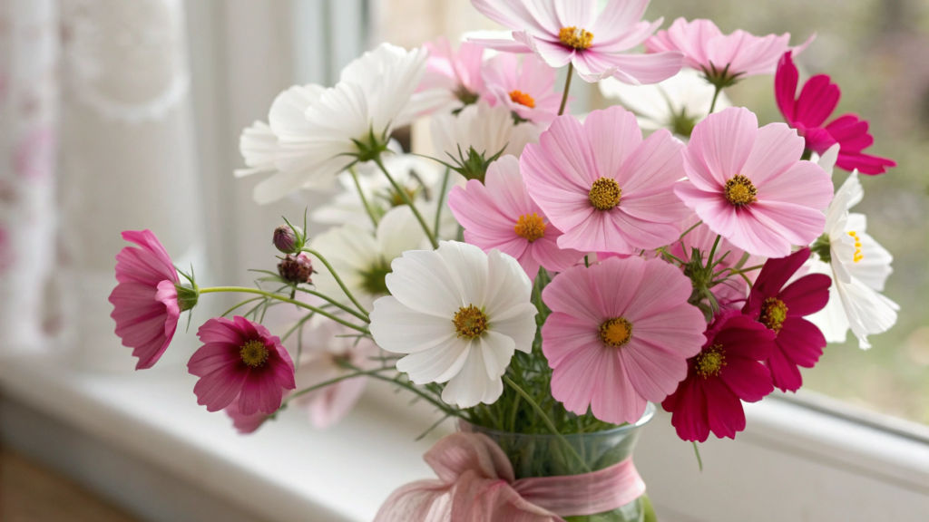 Due to their symbolic value, the cosmos arrangements are very popular when used in interior design as reception desk, waiting bays and boardrooms. Their dull pinks, whites, and crimson hues form a neat but a cheerful environment, which is consistent with both professionalism and tranquility.
