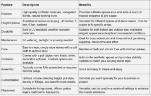 | Natural Appearance | Designed with realistic foliage, intricate branches, and textured trunks |
