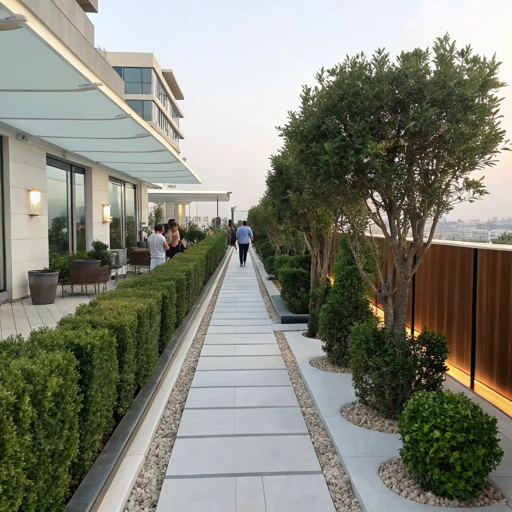Landscape architects specify our box hedge varieties for hotels, malls, and offices. Use large faux shrubs to define walkways. Our modern topiary creates a high-end atmosphere for landscaping budgets of all sizes.
