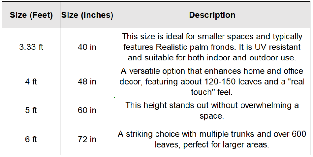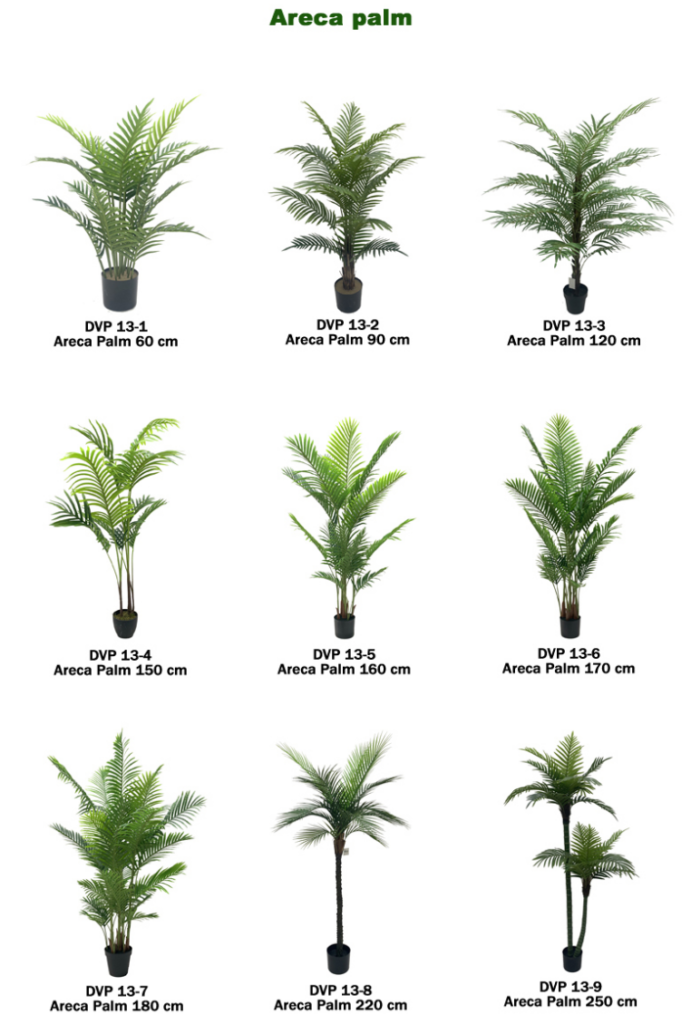 With its elegant, space-saving design, our artificial Areca palm comes in various sizes. You can choose from compact trees ideal for smaller areas to larger, more dramatic trees perfect for creating a statement piece. Whether you need a palm tree to brighten a corner or fill a large area, there’s a size to fit your requirements.