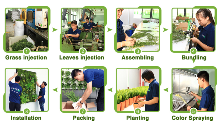 We leverage our advanced factory and a dedicated team to excel in mass production, ensuring a consistent supply of high-quality artificial plants.